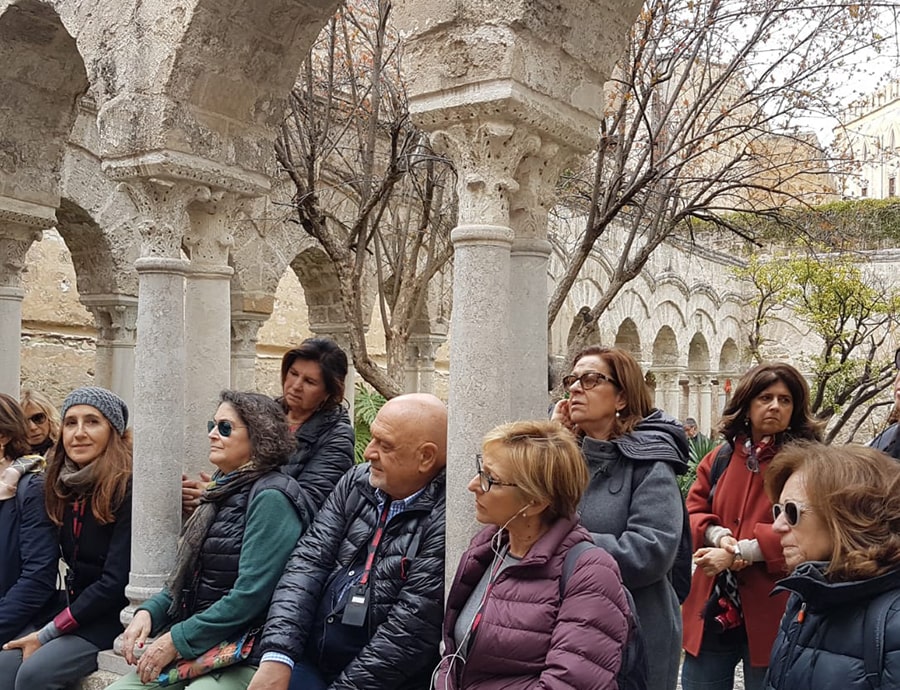 Sarà un viaggio particolarmente dedicato alla Palermo araba e normanna. La visita comincerà avviandosi verso monte, nell’antico insediamento di Palermo a piazza della Vittoria, e visitando il palazzo dei Normanni e la Cappella Palatina, testimoni di un’antica stratificazione di poteri. Da lì scenderemo verso mare, passando prima per la Cattedrale e proseguendo poi per l’incrocio dei Quattro Canti tra corso Vittorio Emanuele e via Maqueda. Passeremo dalla chiesa Normanna di San Giovanni degli Eremiti, tra i più significativi monumenti della Palermo Normanna, che conserva uno dei più antichi cicli musivi della Sicilia, e poi proseguiremo verso il mare attraverso i mercati e le strade della città medievale sino al porto della Cala.
