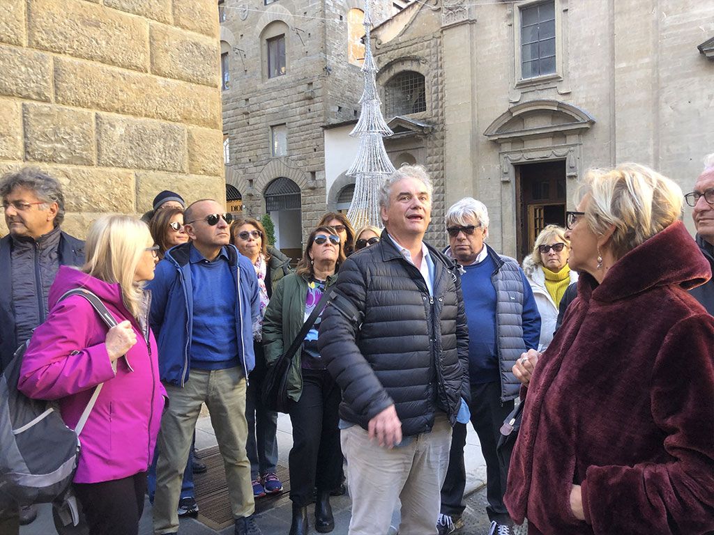 Paolo Ciampi, accompagnatore discreto e colto. Di cui si percepisce subito amore e conoscenza della civiltà della Città del Giglio .