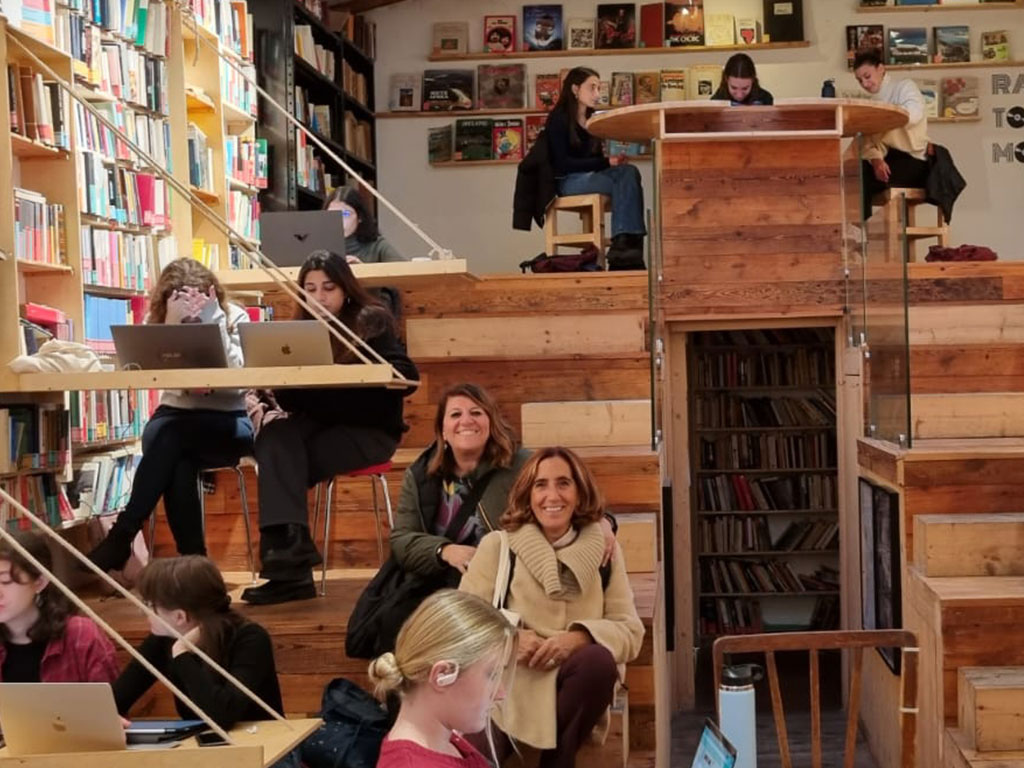 Per concludersi nel contemporaneo. Un ambiente che è pausa di caffè, dolce, calici di Chianti; e “aula “con banchi e mensole in sopraelevata.
