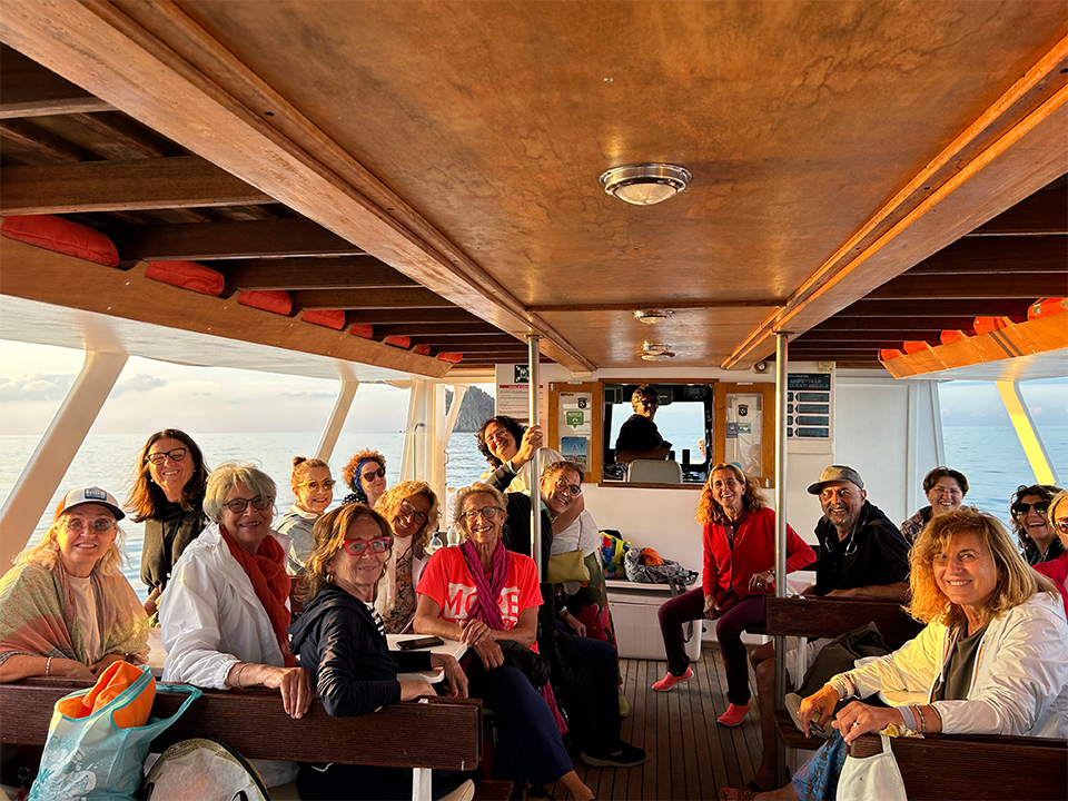 I partecipanti, a bordo del battello “Lady Salina” (www.salinarelaxboats.com), gestito da un impareggiabile equipaggio, composto dal comandante Simone e dai simpaticissimi Salvatore, Marco e Matteo, hanno potuto visitare non solo Salina ma anche Alicudi, Filicudi, Panarea e Stromboli. Grazie alla loro preziosa organizzazione ci sono stati momenti di assoluto divertimento, si sono potuti vedere paesaggi mozzafiato, piante di capperi in fiore, capre selvatiche, falchetti che nidificano solo in luoghi impervi delle isole, bagni in acque di uno stupefacente blu cobalto. Le giornate passate con loro possono essere definite senza tema di smentite “memorabili”.