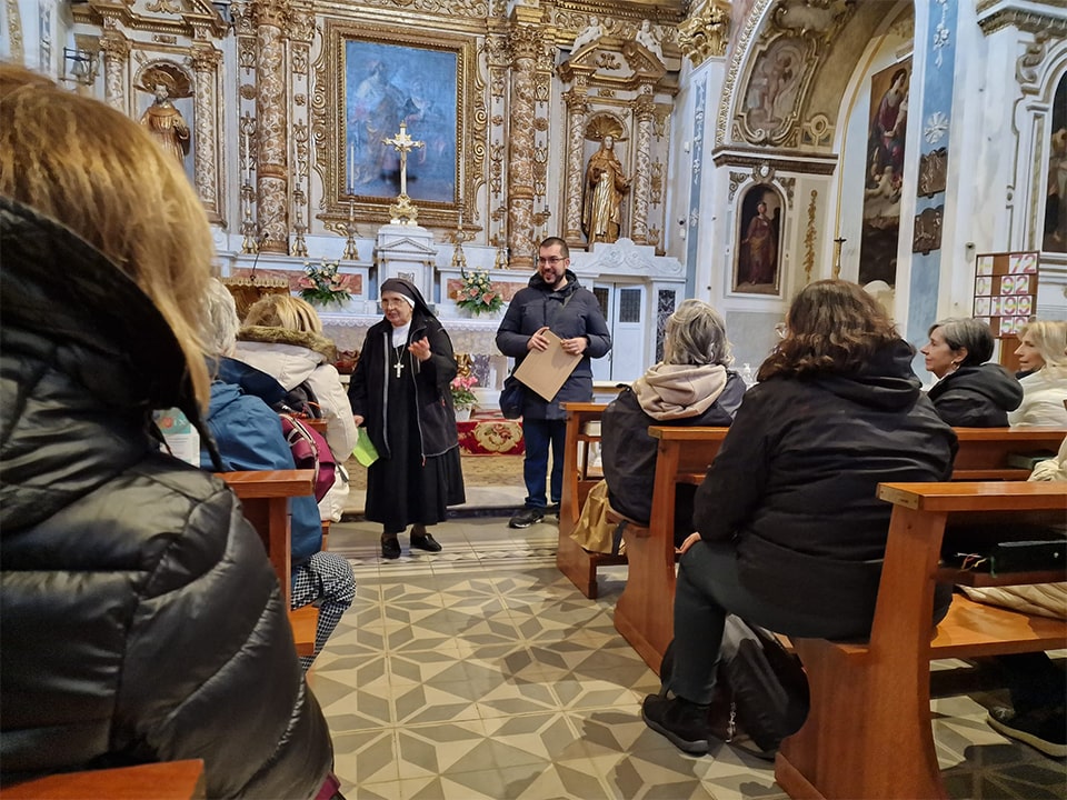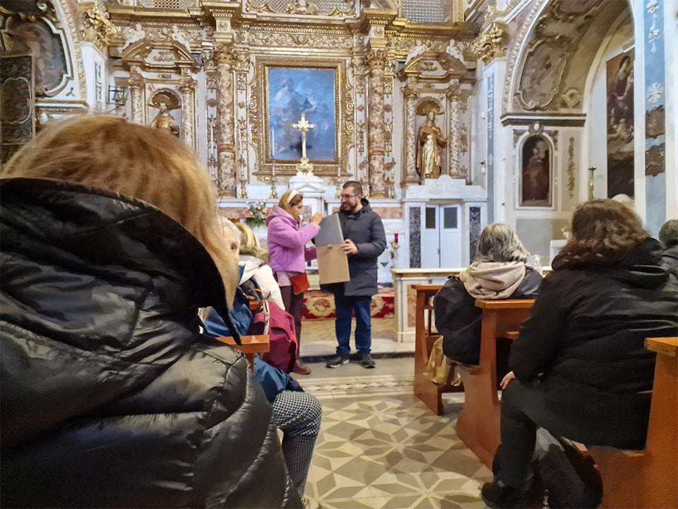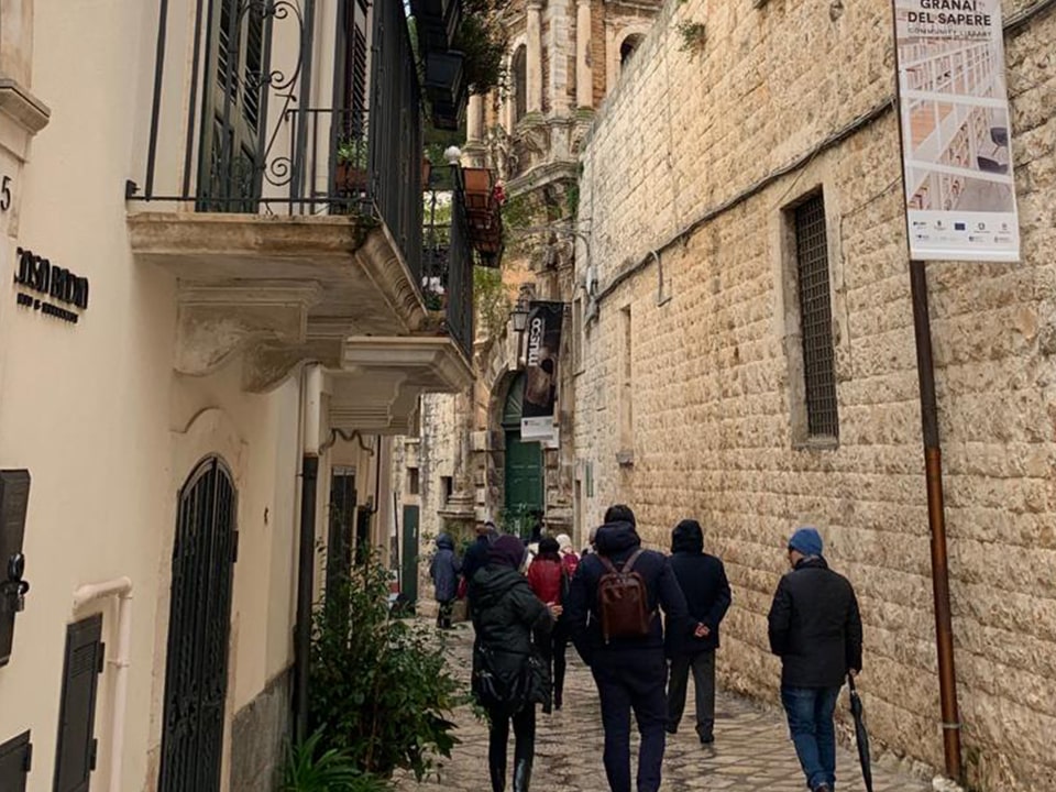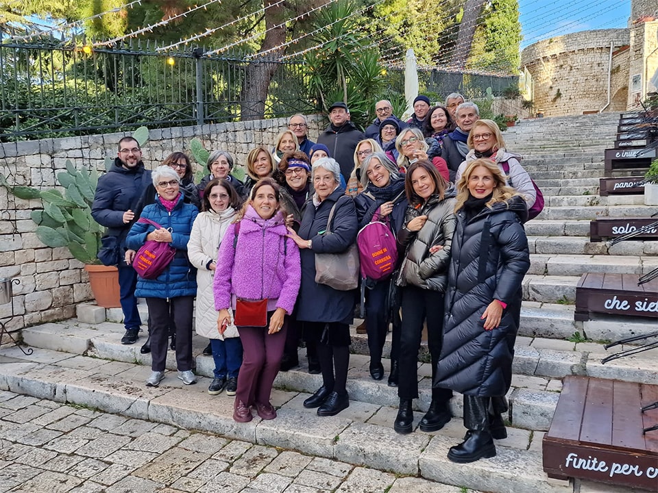 È stata una giornata intensa, quella trascorsa ieri 26 novembre con socie e soci del nostro pluridecennale sodalizio in visita di studio a Conversano sulle tracce di Finoglio e del Guercio di Puglia con Mariano Rizzo, giovane scrittore di talento della nostra terra. Partendo dalla lettura dei suoi ultimi due libri che ha ispirato questa visita, Terra d’ombra (Edizioni di Pagina) e Nella forza non eguali (Besa editore), abbiamo attraversato secoli di storia e di arte respirando atmosfere e conoscendo personaggi che hanno intrecciato le loro vite. Abbiamo percorso vicoli e viuzze, visitato chiese e chiostri di una bellezza rara, insieme a luoghi inaspettati pieni di libri. Non abbiamo tralasciato il gusto e il piacere di stare insieme attorno al desco, gustando ottimi piatti locali in un ambiente molto caldo, accogliente e originale.