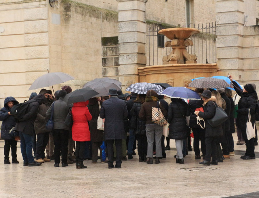 Il percorso è iniziato dalla settecentesca Piazza Vittorio Veneto ed è stato dedicato alla scoperta delle numerose fontanelle, delle cisterne e dei pozzi da cui, sino a non molti anni fa, le donne materane giungevano da ogni parte dei Sassi per attingere acqua piovana o acqua sorgiva. Il gruppo di partecipanti ha ammirato la monumentale Fontana Ferdinandea e, col supporto di fotografie dei primi anni del Novecento, è stato interessante anche osservare le differenze rispetto all’assetto attuale della fontana e della piazza. Poi, un tuffo nel profondo Palombaro Lungo effettuando un percorso sotterraneo nel cuore della roccia dove si conservavano milioni di litri d’acqua.